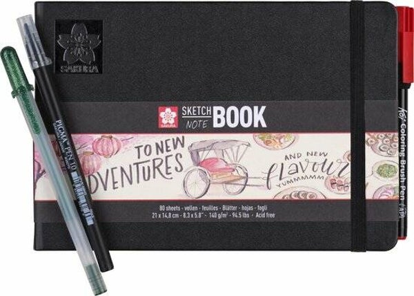 In zwart gebonden Sakura schetsboek met crème witte pagina's. Een ideaal schetsboek voor het tekenen op locatie en het oefenen van technieken (inkt/potlood/oliepastel/houtskool). Natuurlijk ook te gebruiken als notitieboek of voor bulletjournaling.